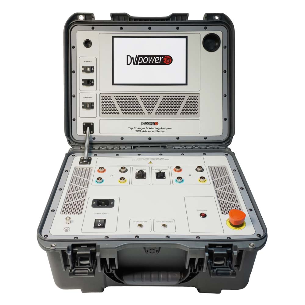 Download Catalog Watch VideoTWA Advanced series is the latest DV Power solution for three-phase transformer winding resistance measurement and tap changer analysis. They are capable of testing six transformer windings with a single cable connection, as well as three-phase automatic transformer demagnetization. It has the option of the automated test mode, where the instrument operates the tap changer without operator input (minimizing the risk of human error) and records winding resistance results based on pre-selected stabilization criteria.