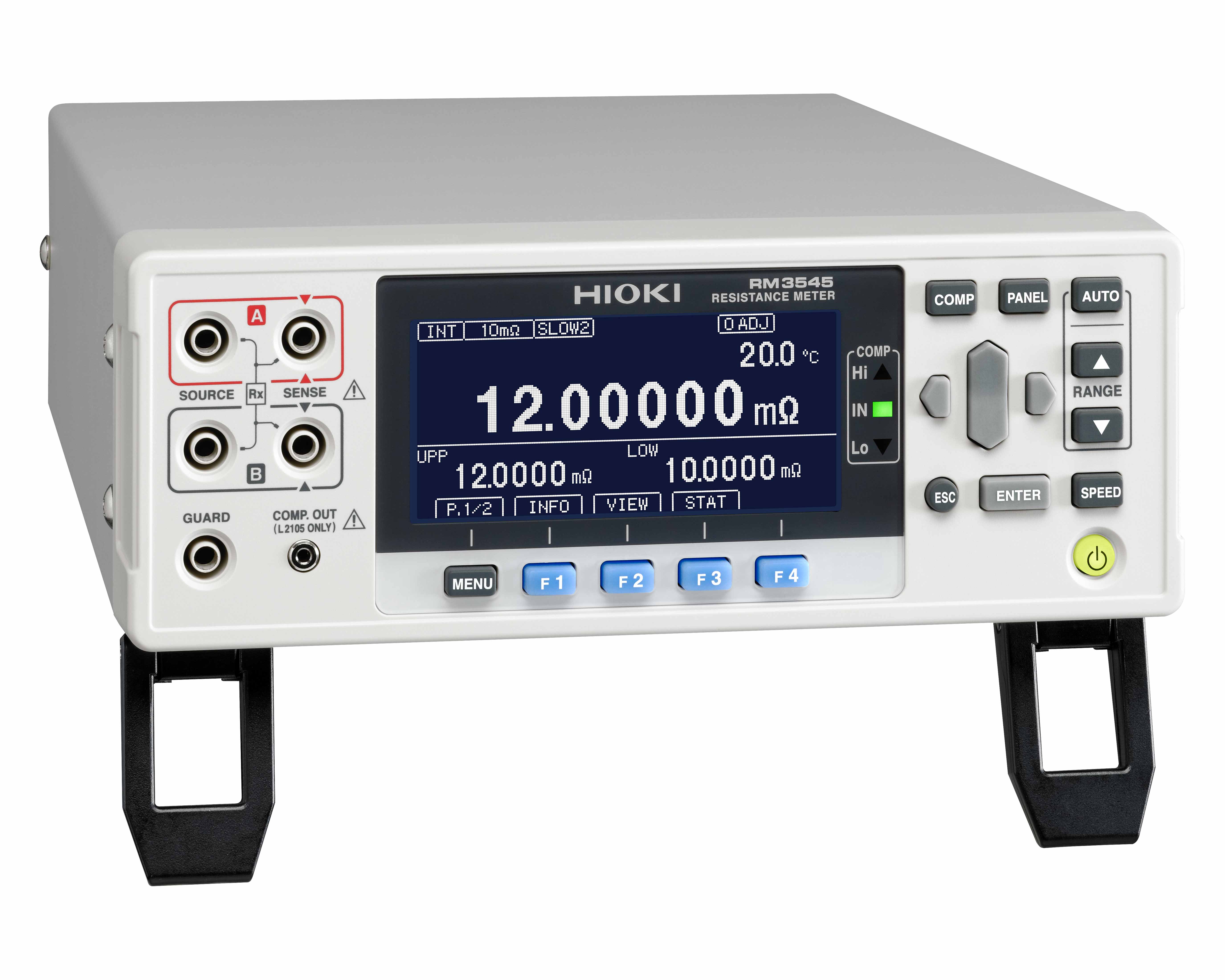 Hioki DC resistance meters measure a broad range of resistance values at a high level of precision. The RM3545 is super-high-precision, multichannel-capable resistance meters that meet applications in advanced research and production for testing winding resistance of motors and transformers; contact resistance of power relays, switches, and connectors; and resistance of signal relays and magnetic parts.