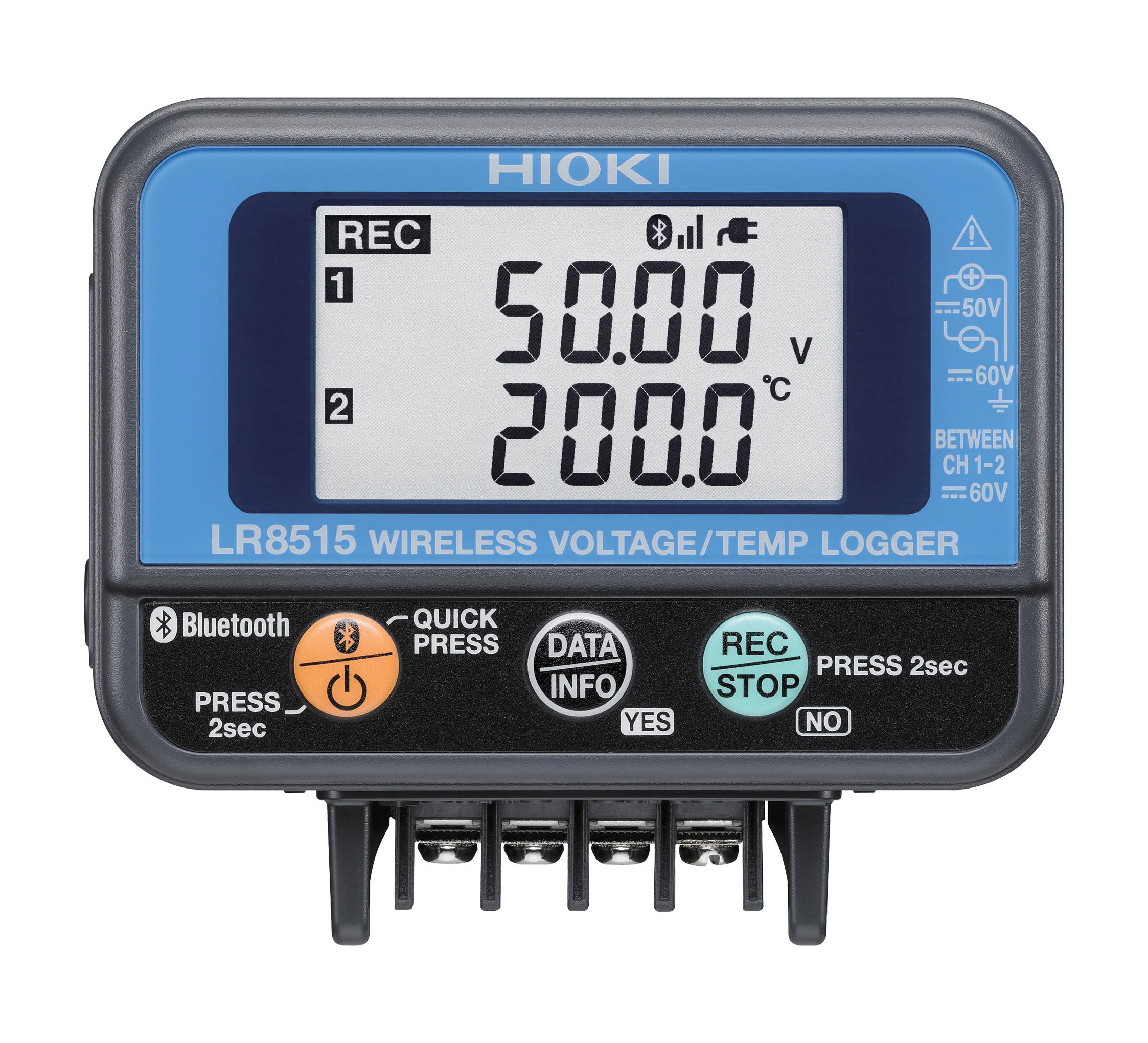 Download CatalogHioki Memory HiLoggers are high-speed data loggers for recording multiple channels of voltage, temperature, resistance or humidity signals, some models providing complete isolation between channels and strong noise resistance. The Hioki LR8515 Wireless Voltage/Temperature Logger provides easy, wireless collection of a variety of data types, including voltage input and thermocouple types K and T, all in a single device.