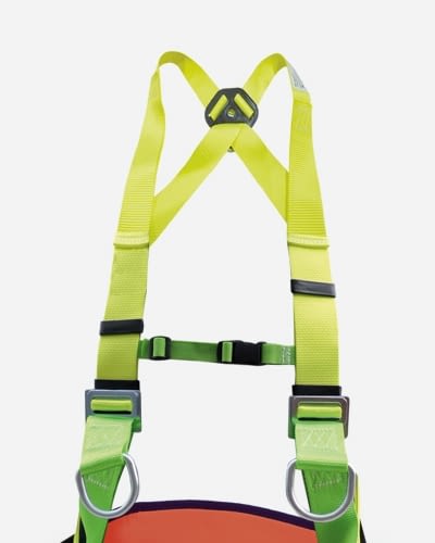 Full body fall-arrest harness compliant with standard EN 361. Includes two attachment points (to climb up and down) one on the back and the other one on the abdominal area. Includes adjustable shoulder and leg straps as well as work support belt compliant with standard EN 358 with two side attachment points at the end for coupling an anchorage element.