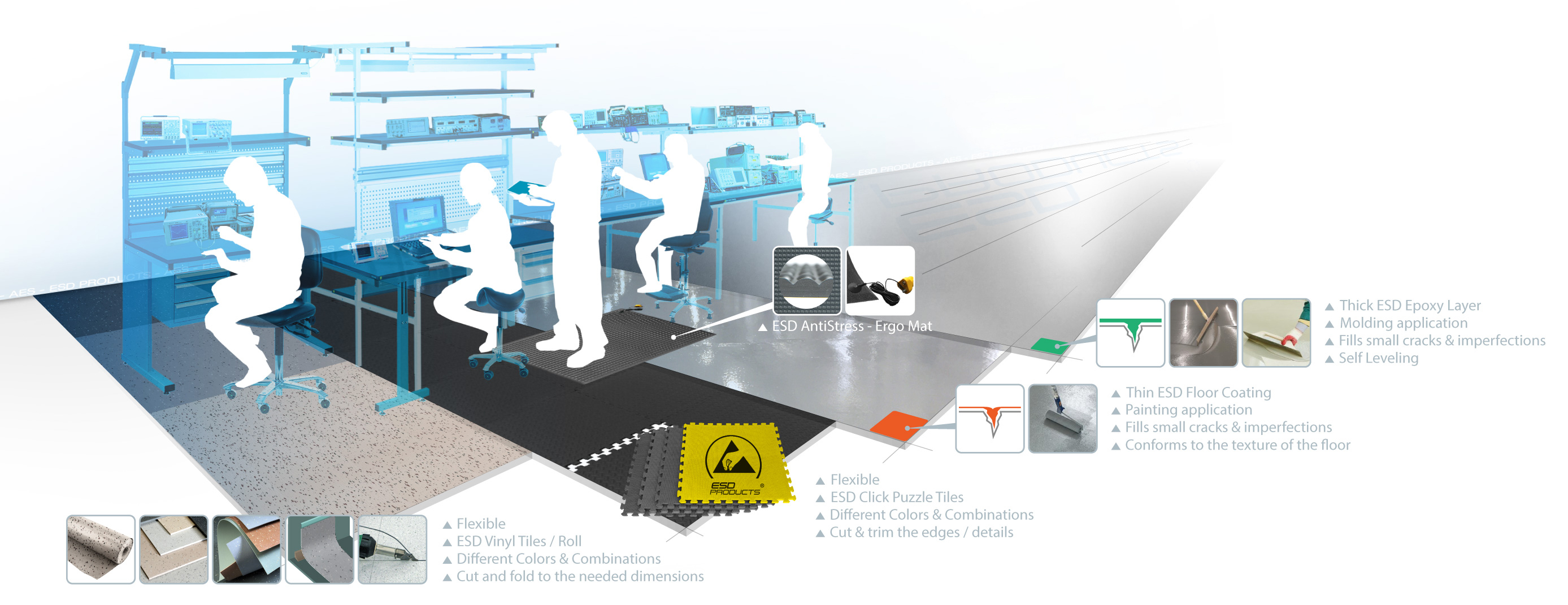 - Grounding of personnel (floor materials can be used in combination with static control footwear as either a primary ground or a secondary, backup system, ground for wrist straps in critical ESD processes)