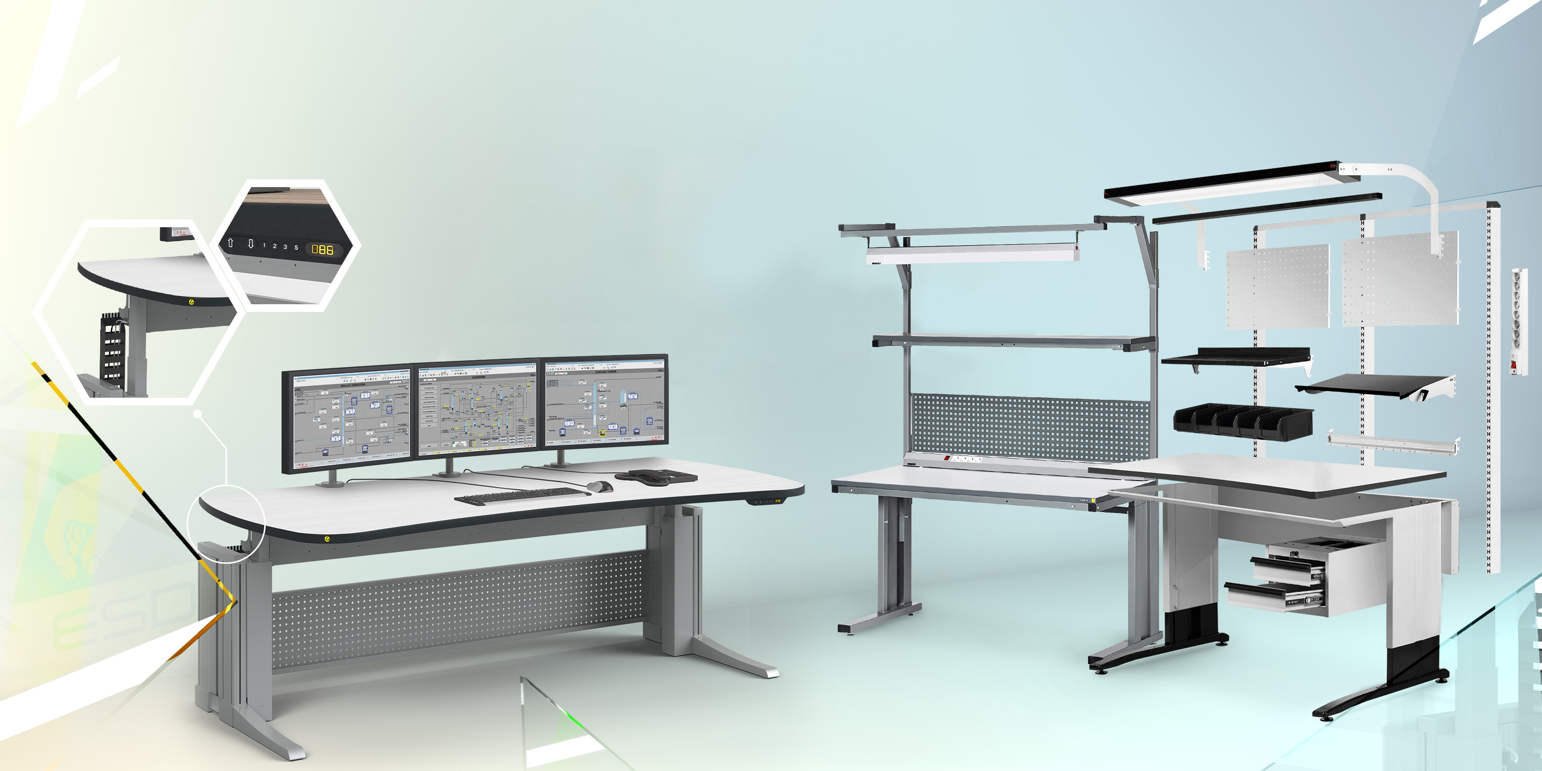 ESD workbenches, ESD safe cabinets, ESD-trolleys and ESD-products