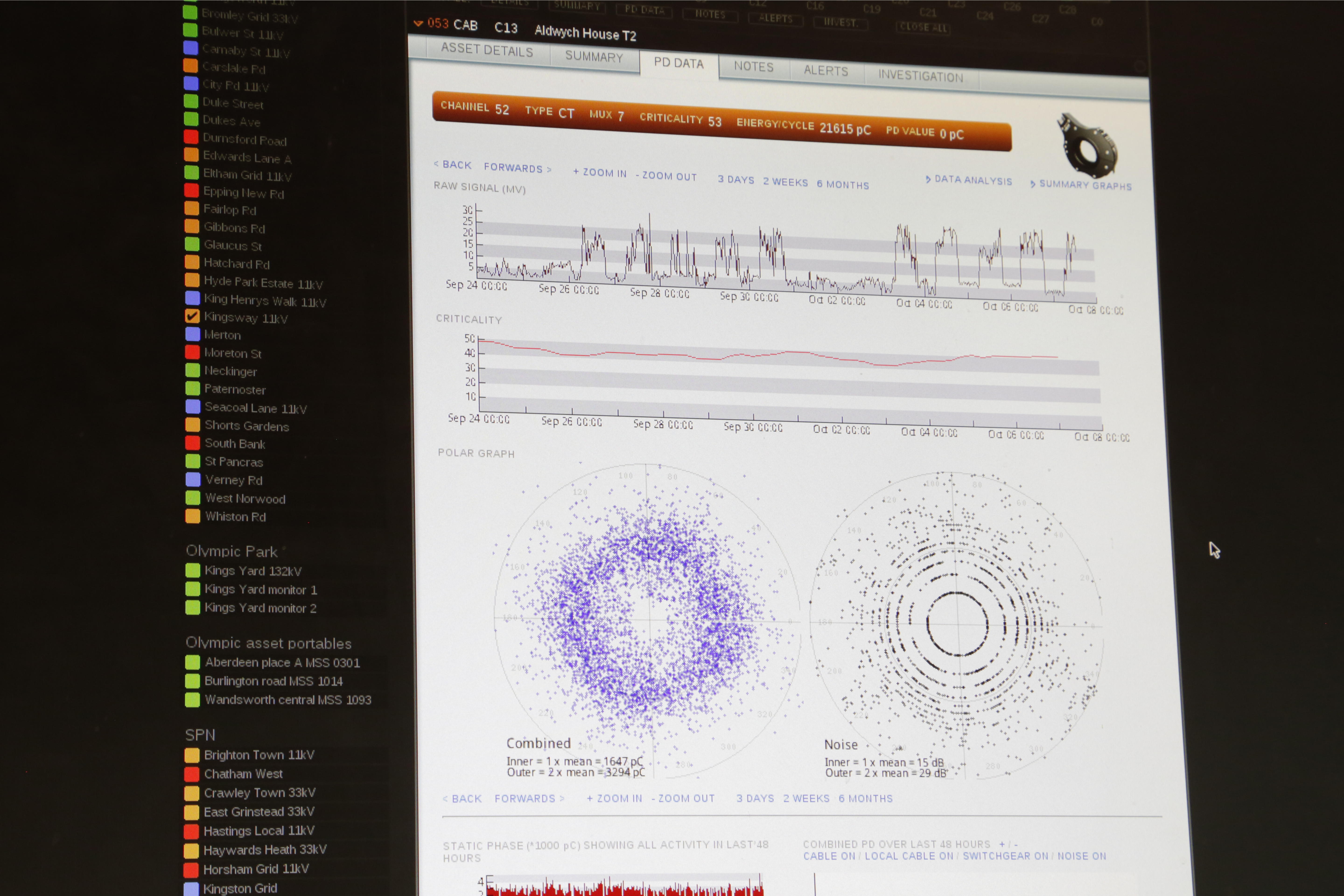 Based on the magnitude of activity levels recorded and the trend in that activity, a ‘League Table’ is automatically generated once every 24 hours. This table gives a clear and quantitative representation of the condition of monitored high voltage assets at any given moment.