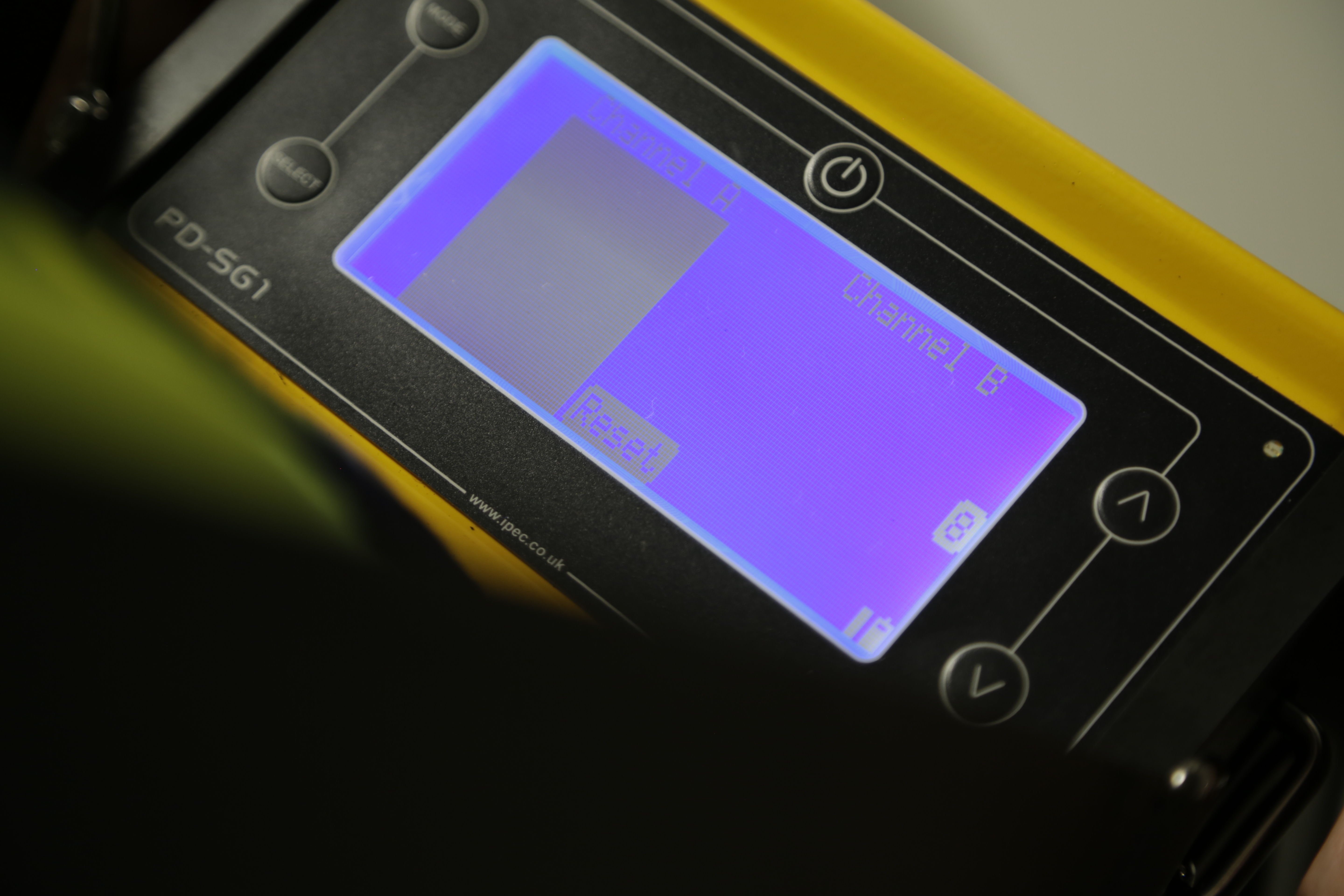 The maximum PD detected is shown on the display. The reading can be restarted at any time by selecting ‘Reset’. The repetition rate, or the ‘Count’, shows a measure of the amount of PD detected per power cycle. -