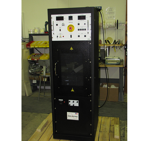 Standard models are available from 10 kV AC – 50 kV AC and rated 1 kVA – 3 kVA. They are all one-piece designs with the high voltage section contained within the cabinet. Higher voltage models are available with two pieces, a controller and an HV tank. Various control packages are available, from simple manual controls to fully programmable logic control (PLC) options. Some models are corona free for performing partial discharge testing.