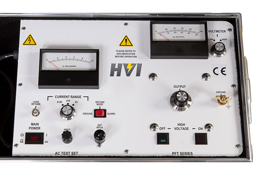 The PFT-1003CM and PFT-1003CMF are from our popular PFT Series of field portable AC hipot test sets. These hipots provide continuously adjustable AC voltage used for a pass/fail, AC over-voltage withstand test on high voltage apparatus, like switchgear, circuit breakers, reclosers, vacuum bottles, hot sticks, bus duct, and any other apparatus needing an AC test voltage. The PFT Series offers the most field portable, affordable, and easiest to operate AC hipots at this voltage and power. A gapped core transformer for up to 3 kVA of output power with the draw of only 1.5 kVA so the hipot can be powered by a standard 120Vac or 230Vac input. Equipped with a two-range voltmeter, three-range current meter and guard circuit for precise leakage current measurements. For bench-top requirements see the ABT Series. Testing loads that require higher power, see our ALT, FPA, HPA and PAR lines of AC dielectric test sets.