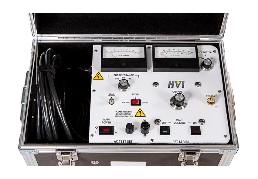 The PFT-652CM and PFT-652CMF are from our popular PFT Series of field portable AC hipot test sets. These hipots provide continuously adjustable AC voltage used for a pass/fail, AC over-voltage withstand test on high voltage apparatus, like switchgear, circuit breakers, reclosers, vacuum bottles, hot sticks, bus duct, and any other apparatus needing an AC test voltage. The PFT Series offers the most field portable, affordable, and easiest to operate AC hipots at this voltage and power. Equipped with a two-range voltmeter, three-range current meter and guard circuit for precise leakage current measurements. For bench-top requirements see the ABT Series. Testing loads that require higher power, see our ALT, FPA, HPA and PAR lines of AC dielectric test sets.