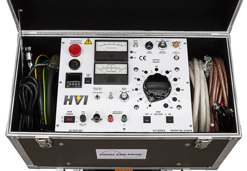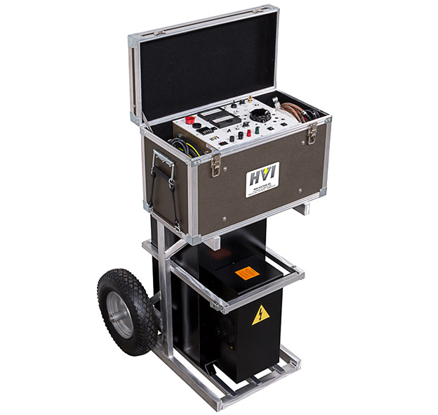 The VLF-90CMF is a higher voltage model designed to test cables rated up to 50 kV. This model includes a charging current and load capacitance meter, test dwell timer, and polarity indicating lights. Its two-piece design makes it easier to transport, and an optional hand truck is available for purchase.