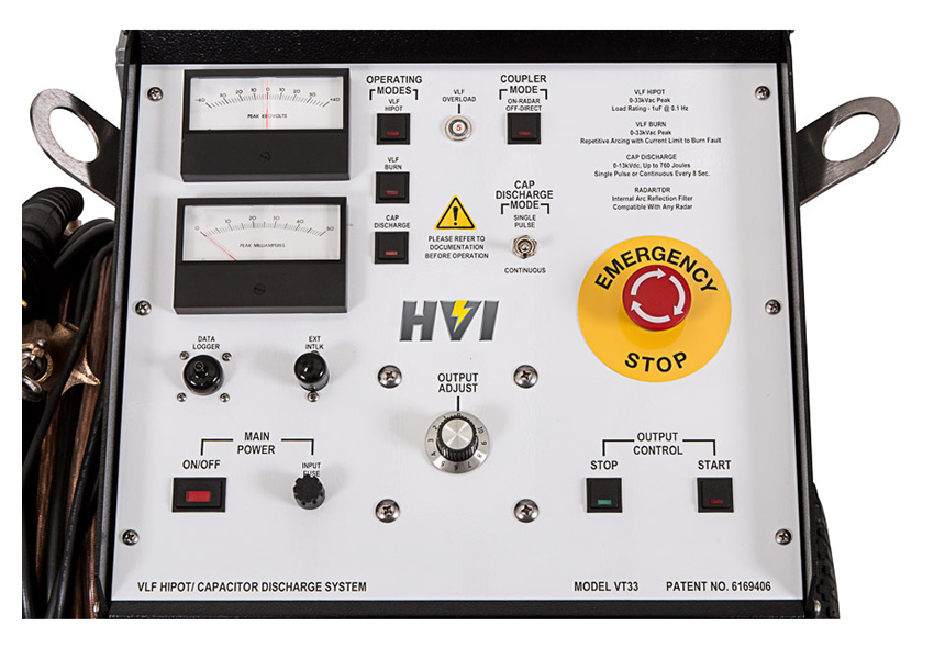 With cable diagnostic testing becoming more common, the need for cable fault location will rise. If you’re in the market for a thumper, why not get one with a VLF hipot built-in to test the AC integrity of the cable following repair. The VT33 / VT33F is our lightest portable primary cable fault locator and the only one with an included ac VLF hipot. Designed for cables rated up to 25 kV, it incorporates both a 0 to 13 kV, up to 760 joule thumper and a 0 to 33 kV ac, 0.1Hz VLF hipot capable of testing a 1 uF load, approximately 10,000 feet of shielded power cable. The VLF hipot is also designed to burn the fault, quickly reducing the resistance of the fault, lowering the breakdown voltage. Thumping at lower voltages reduces the risk of creating more faults. The VT33 produces a discharge every 8 seconds for pinpointing the fault with an acoustic / magnetic detector. Like all HVI cable fault locators, The VT33 / VT33F is TDR-ready and works with most popular brands of Time Domain Reflectometer also known as “cable radar”.