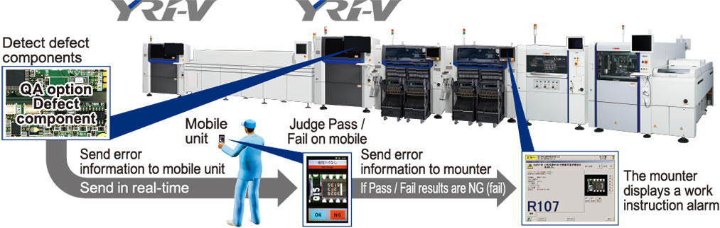 YRi-V can handle large PCBs with L610mm and W610mm as a standard. The dual lane system can convey large PCBs with W320mm on the two lanes