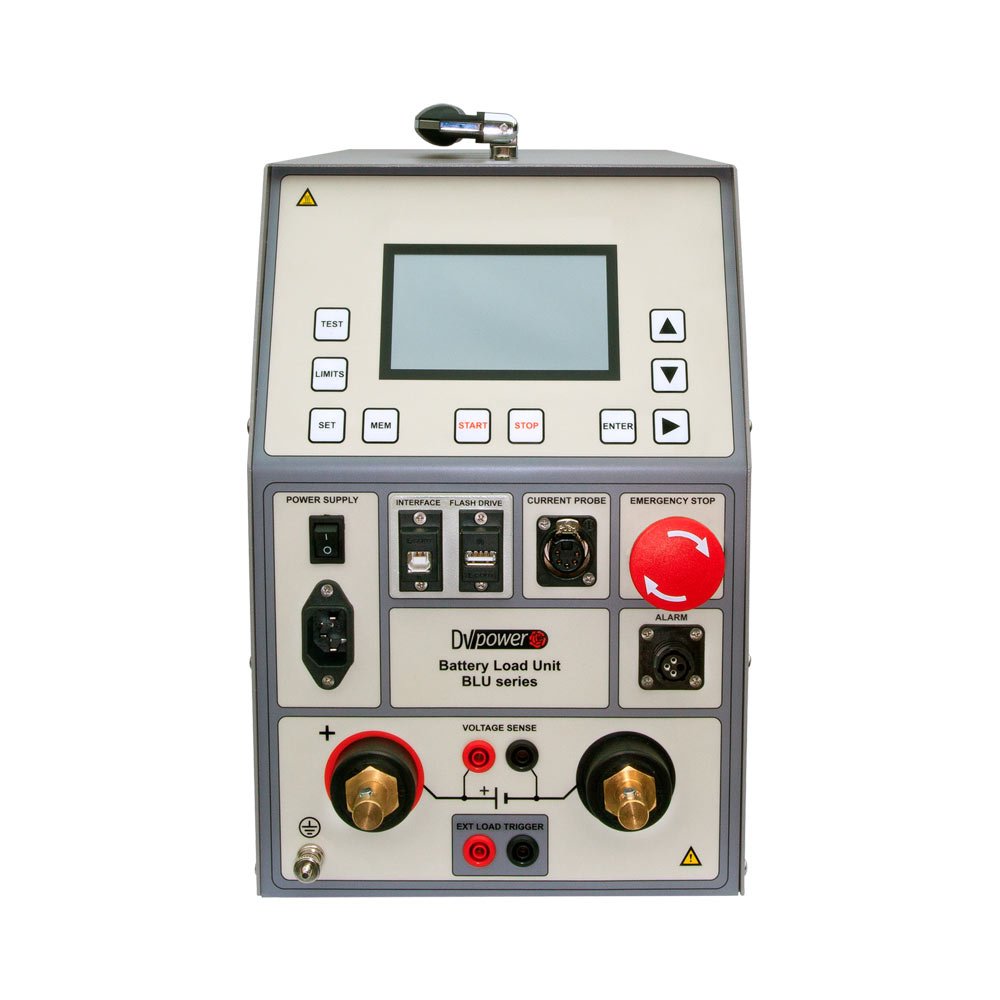 Download Catalog Watch VideoThe battery capacity test is performed to determine the health of a battery. DV Power’s battery load unit BLU-A is a portable, powerful, and lightweight solution for battery capacity measurement. It is applicable to any battery string such as lead-acid, Li-Ion, Ni-Cd, etc., with up to 500 V battery voltage. As a special feature, BLU100L model enables the capacity testing of a single Li-Ion cell.